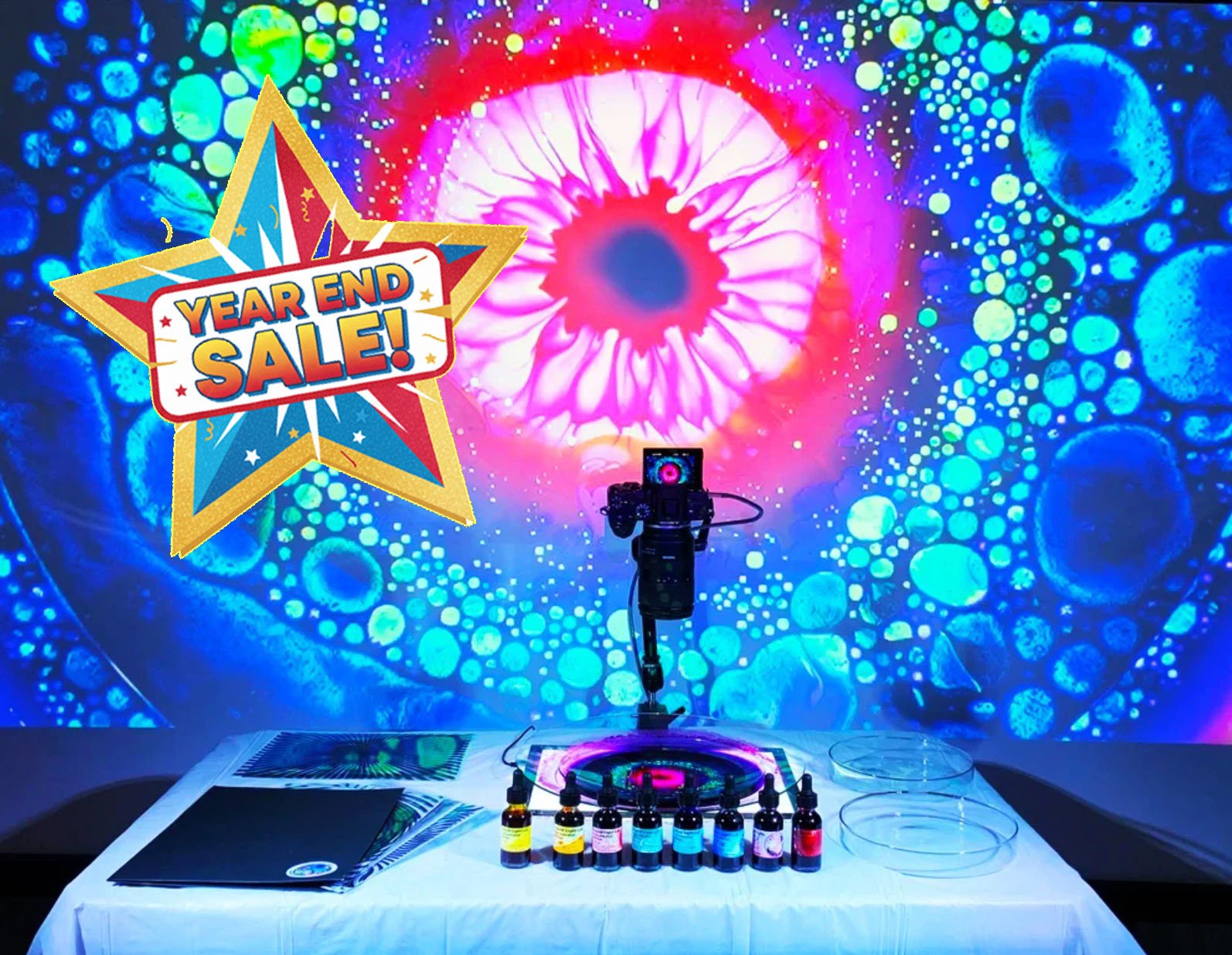 These are superior quality, transparent dyes for use in liquid light shows or fluid art. They mix easily with mineral oil, and float well on top of water, creating classic psychedelic blobs and swirly patterns.